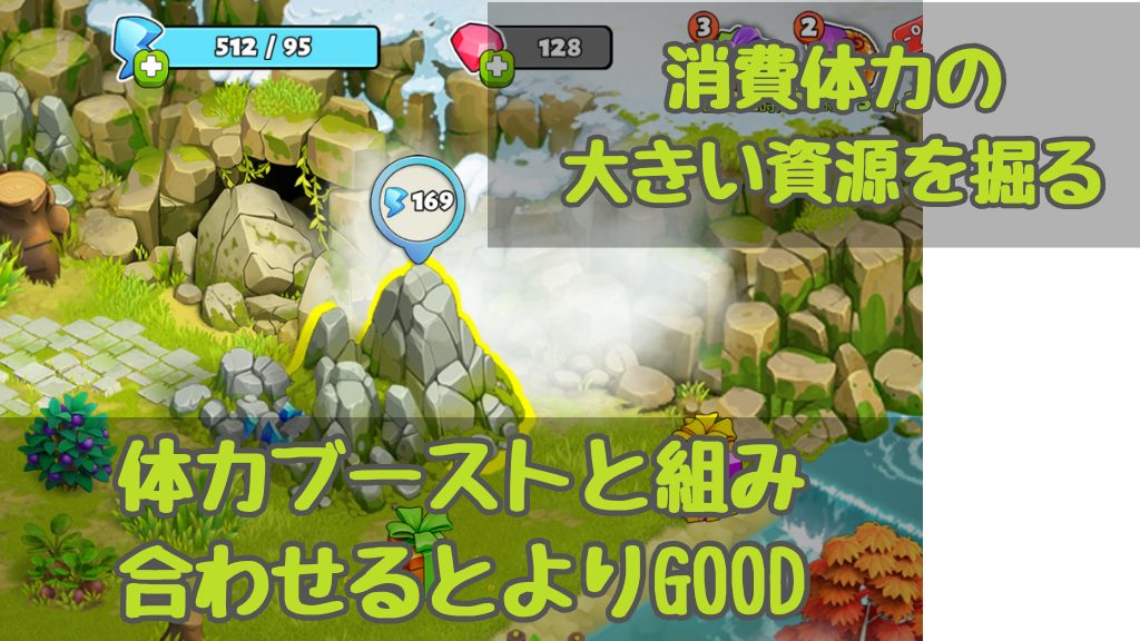 レア素材は中盤に家の強化や一部の建築で要求される。欲しいときに「無い!」となるとポイ活が停滞してしまうので予め確保しておく。