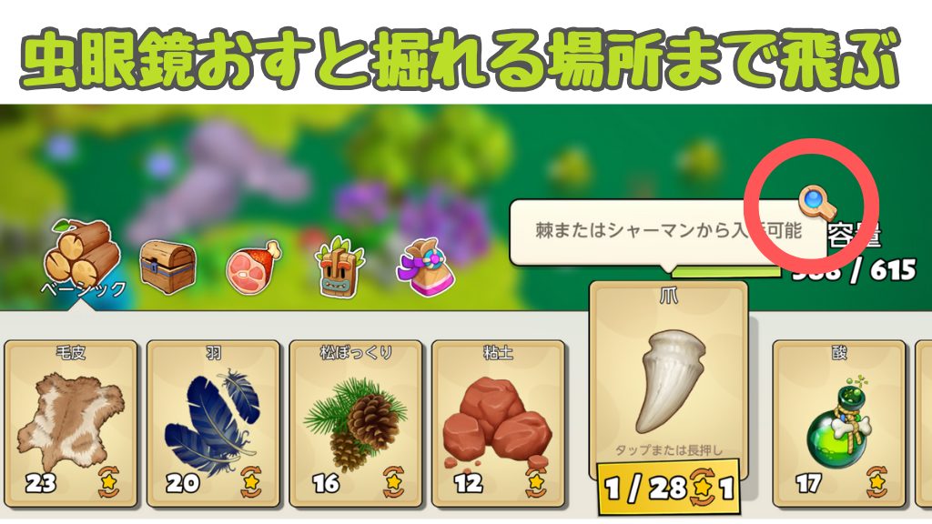 その島に素材があればどの資源ポイントを掘ればいいか教えてくれる。ホーム島だけでは無く、イベント島、探検島でもそれぞれ探してみると良い。