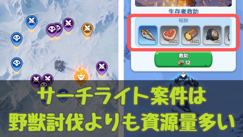 大溶鉱炉レベル7以降に兵士をマップ上の資源地に派遣できるようになる。英雄レベルを上げて兵士をたくさん連れて行けるようになると持って帰れる資源量が増える。