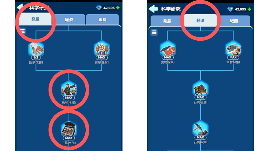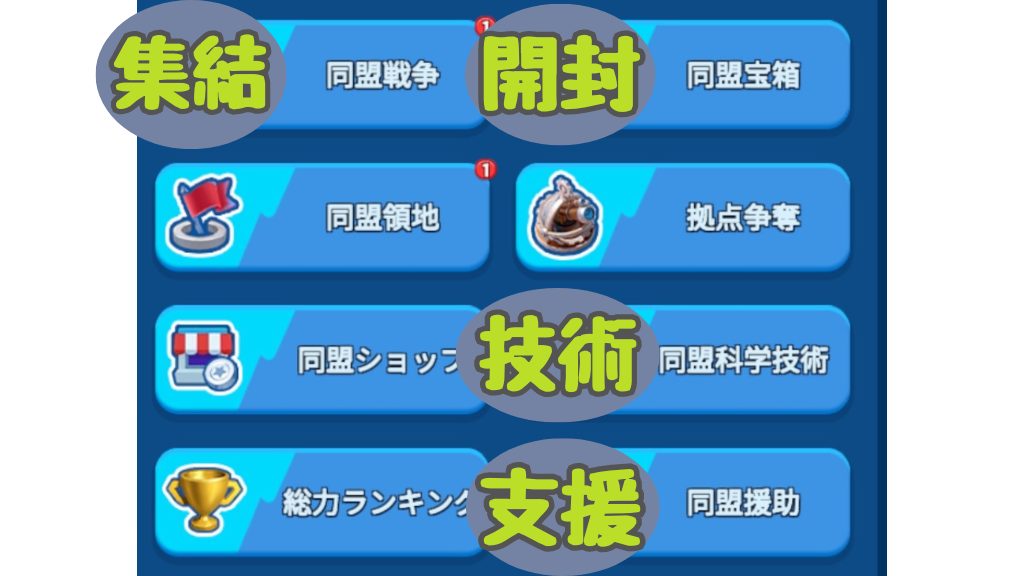 - ランキング上位同盟に加入して、建設支援、同盟技術の恩恵を得る