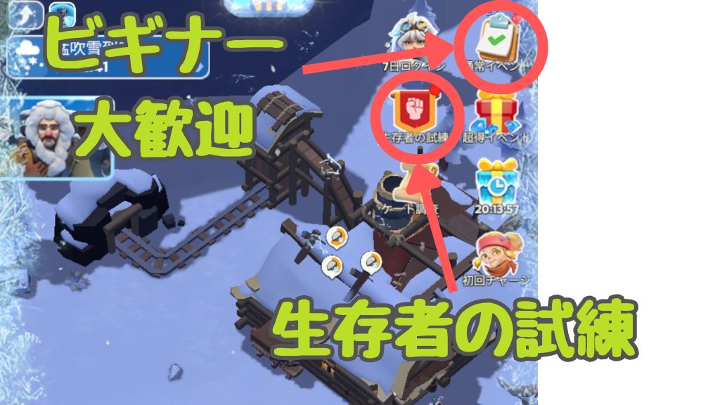 各イベントでは資源や加速が報酬になるのでできるだけ消化する。特に2日間に1度開催の熊狩行動は初心者でも100万単位で資源が貰える最重要イベントになるので必ず参加しよう。